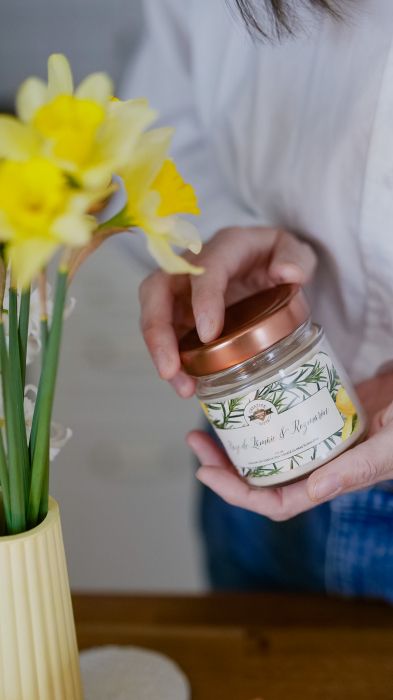 Descoperă o explozie de prospețime cu lumânarea noastră „Raze de Lămâie și Rozmarin”, un parfum delicat care îmbină notele fructate, florale și lemnoase într-o experiență olfactivă sofisticată.