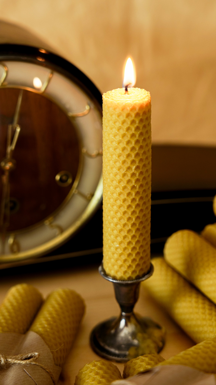 ✨ 100% naturală – doar ceară de albine și fitil din bumbac, fără parfumuri adăugate.