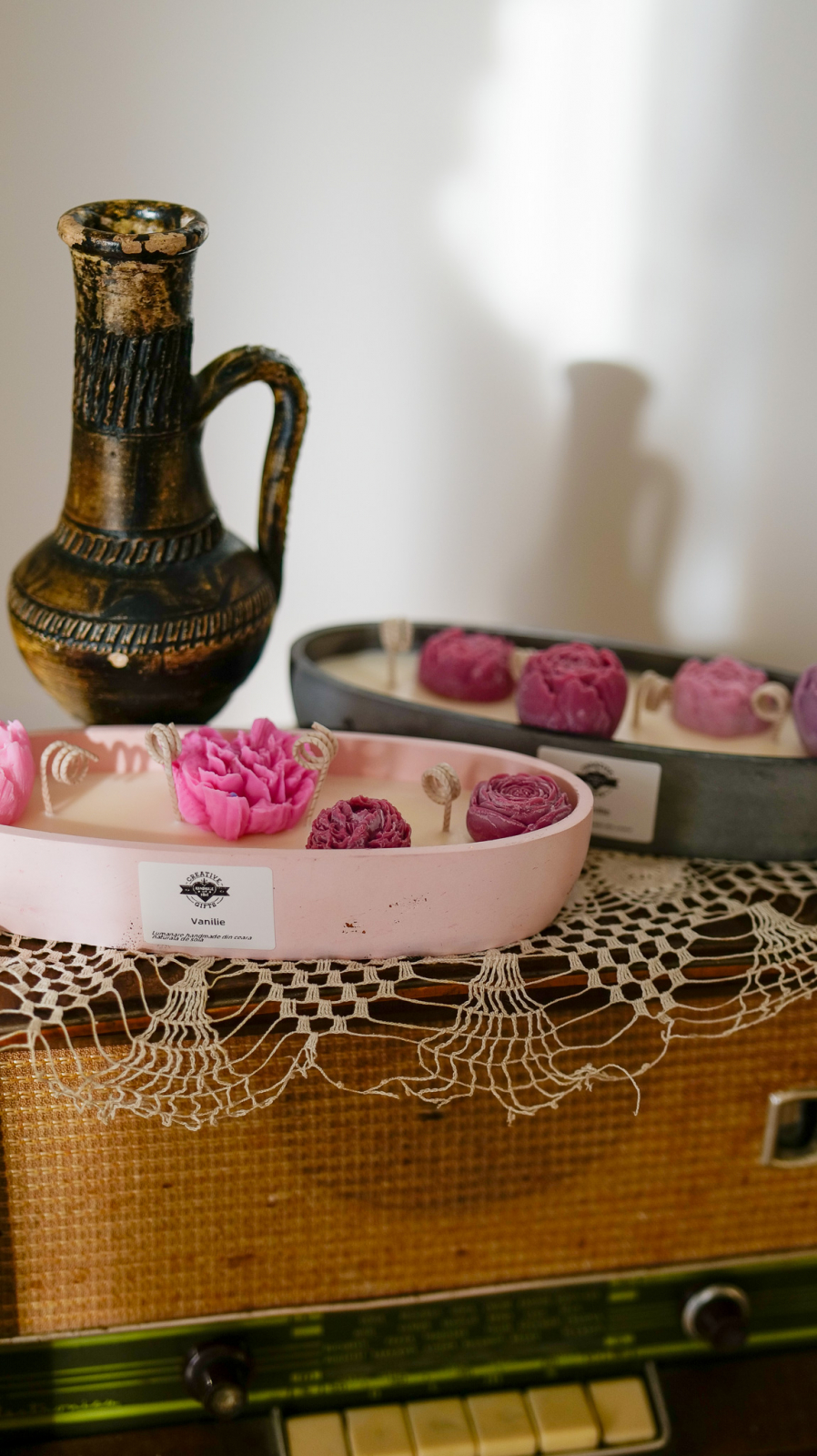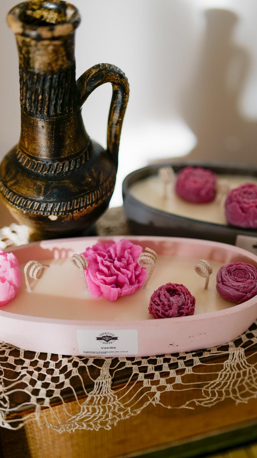 O lumânare nontoxică din ceară naturală de soia, turnată cu drag într-un recipient handmade din praf ceramic și decorată cu flori delicate. Fiecare piesă este realizată manual, cu atenție la detalii, fiind un cadou unic și de efect. Poate fi personalizată la cerere pentru a se potrivi perfect gusturilor sau ocaziei speciale.