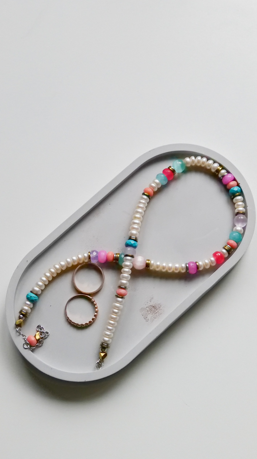 Practică și elegantă, perfectă pentru organizarea bijuteriilor, lumânărilor sau altor mărunțișuri din casă. Realizată manual din praf ceramic, fiecare piesă este unică și adaugă un plus de stil oricărui spațiu.