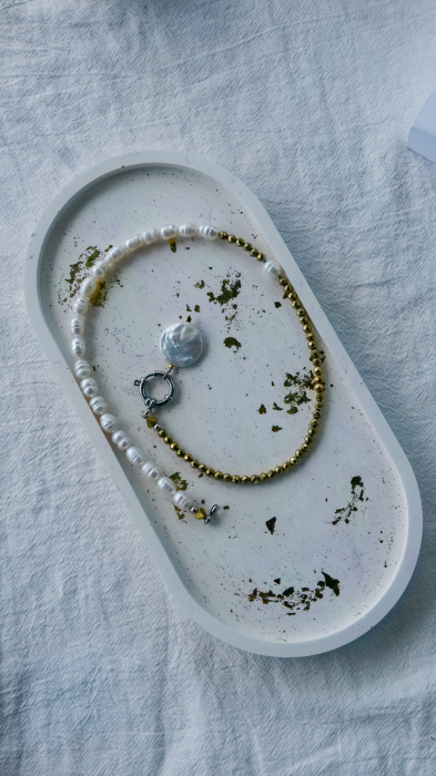 Practică și elegantă, perfectă pentru organizarea bijuteriilor, lumânărilor sau altor mărunțișuri din casă. Realizată manual din praf ceramic, fiecare piesă este unică și adaugă un plus de stil oricărui spațiu.