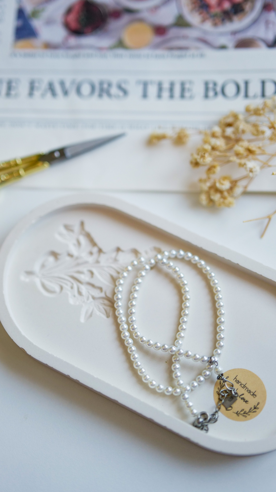 Practică și elegantă, perfectă pentru organizarea bijuteriilor, lumânărilor sau altor mărunțișuri din casă. Realizată manual din praf ceramic, fiecare piesă este unică și adaugă un plus de stil oricărui spațiu.