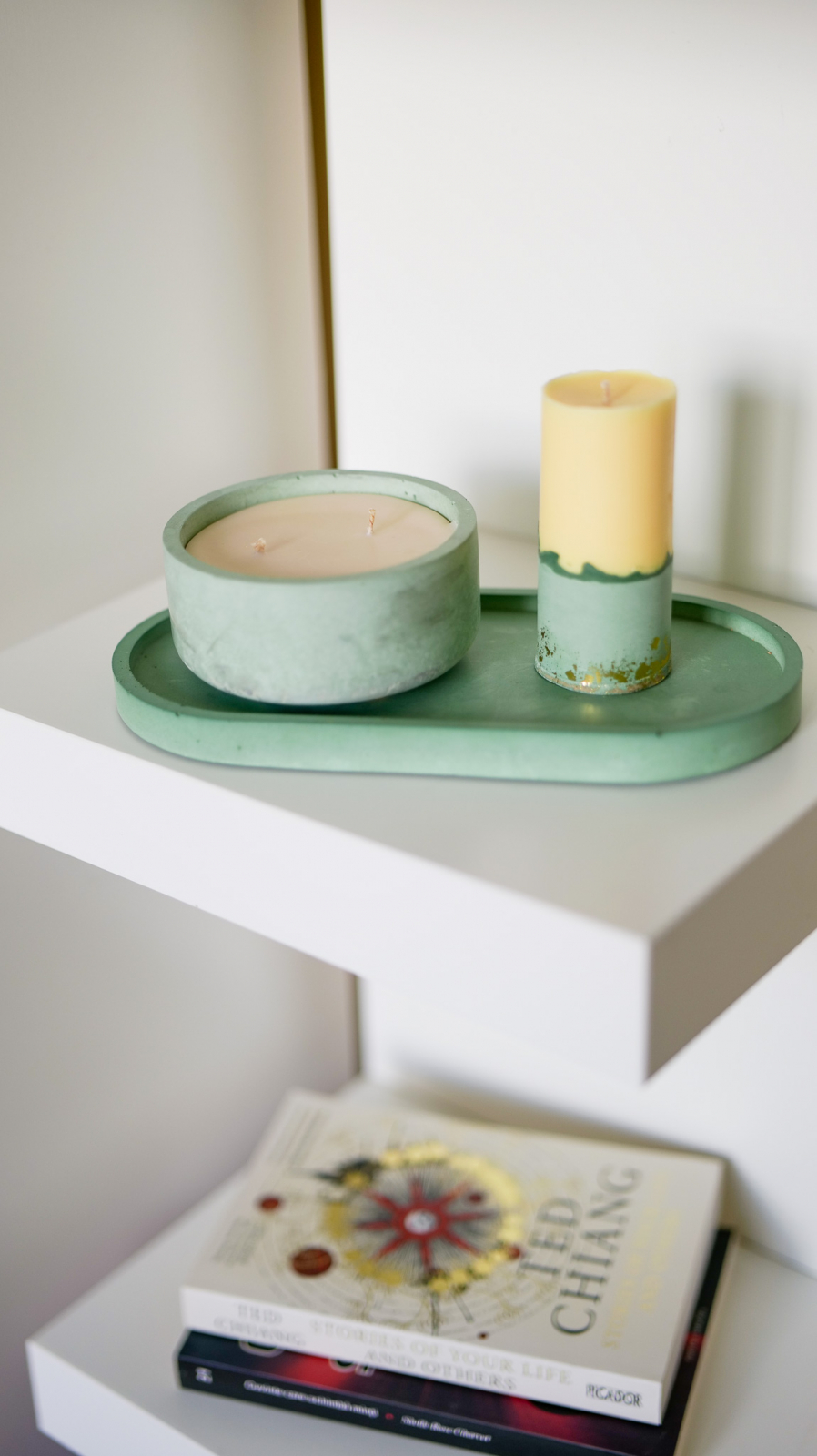 Un trio elegant și versatil: tăvița handmade din praf ceramic este fundalul perfect pentru două lumânări speciale – una neparfumată, pentru o atmosferă simplă și pură, și una parfumată, cu arome atent alese, care aduce un strop de rafinament. Toate sunt realizate manual din ceară naturală de soia, 100% nontoxice. Un set complet, ideal pentru decor sau pentru a fi oferit cu drag, în orice ocazie.